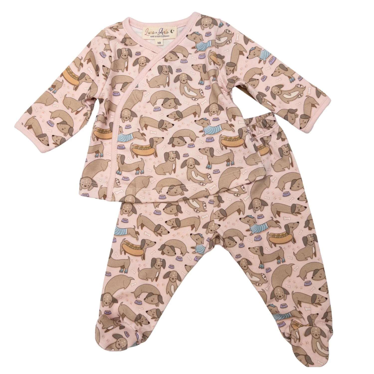 Dachshund Footed Pant Set – Dusty Rose By Luna And Arlo