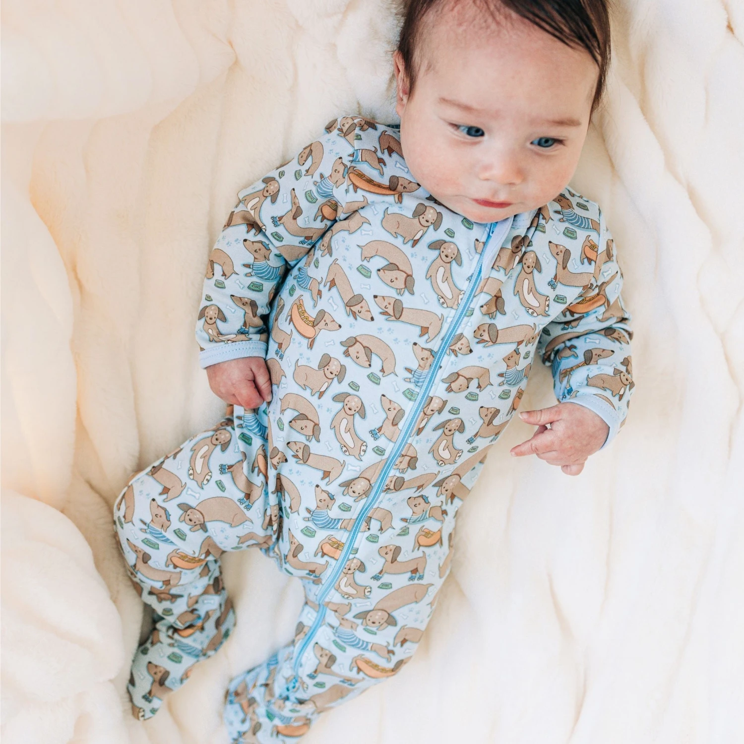 Easily dress up your little one in the Dachshund Zip Footie by Luna and Arlo, featuring fun dachshund prints and made from soft, Pima cotton. Perfect for playtime, naptime, and all the moments in between!