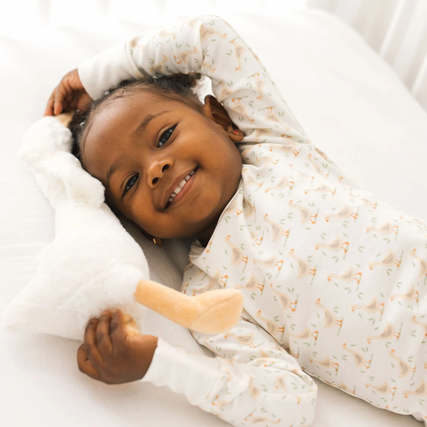 Drift your little one to dreamland in the gentle charm of these long pajamas, featuring a sweet print of geese and delicate leaves. Crafted from the most luxurious Pima Cotton, this pajama set evokes a sense of heartwarming sweetness and comfort for peaceful nights.