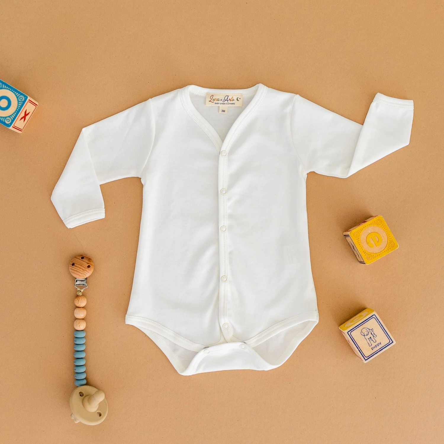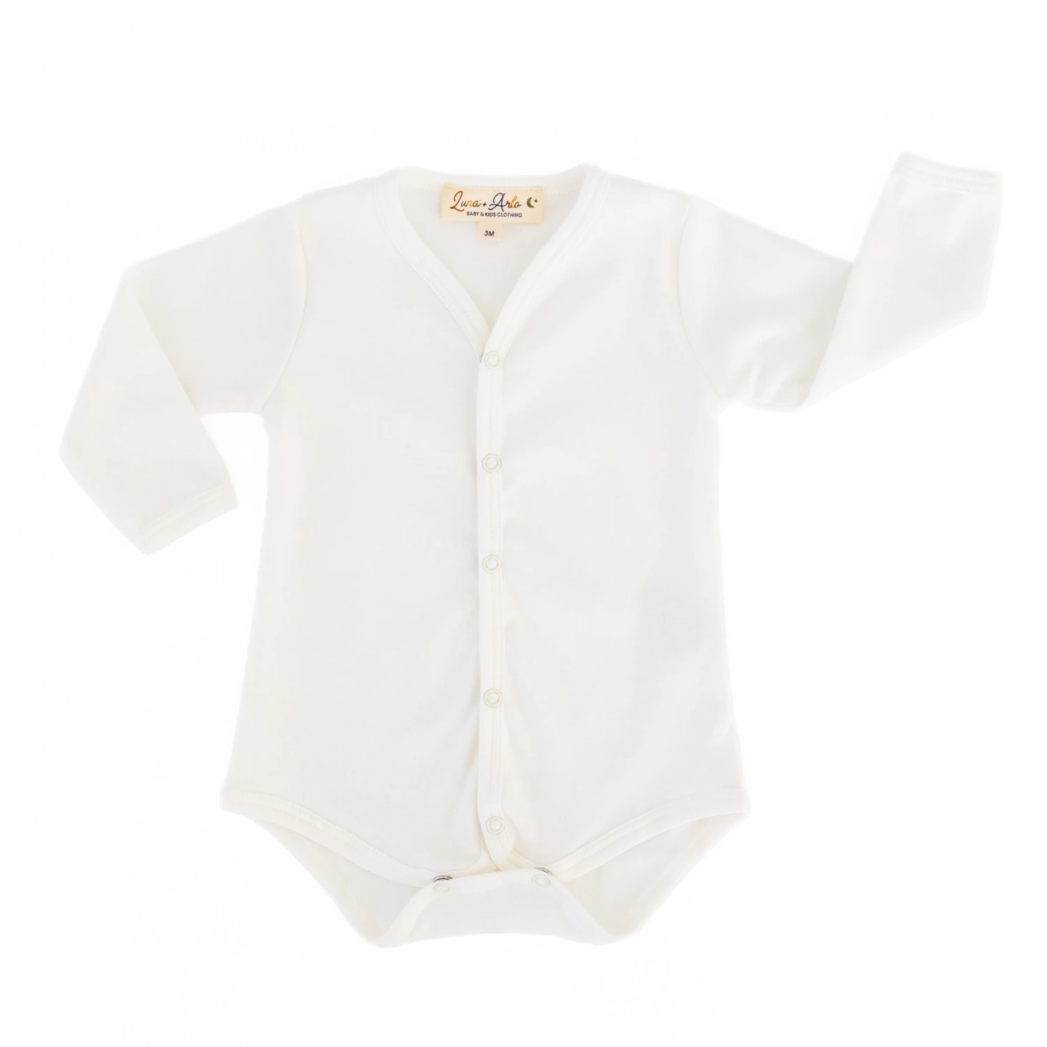 Luna & Arlo Ivory Long Sleeve Bodysuit – Pima Cotton Snap-Front Style for Monogram or Embroidery