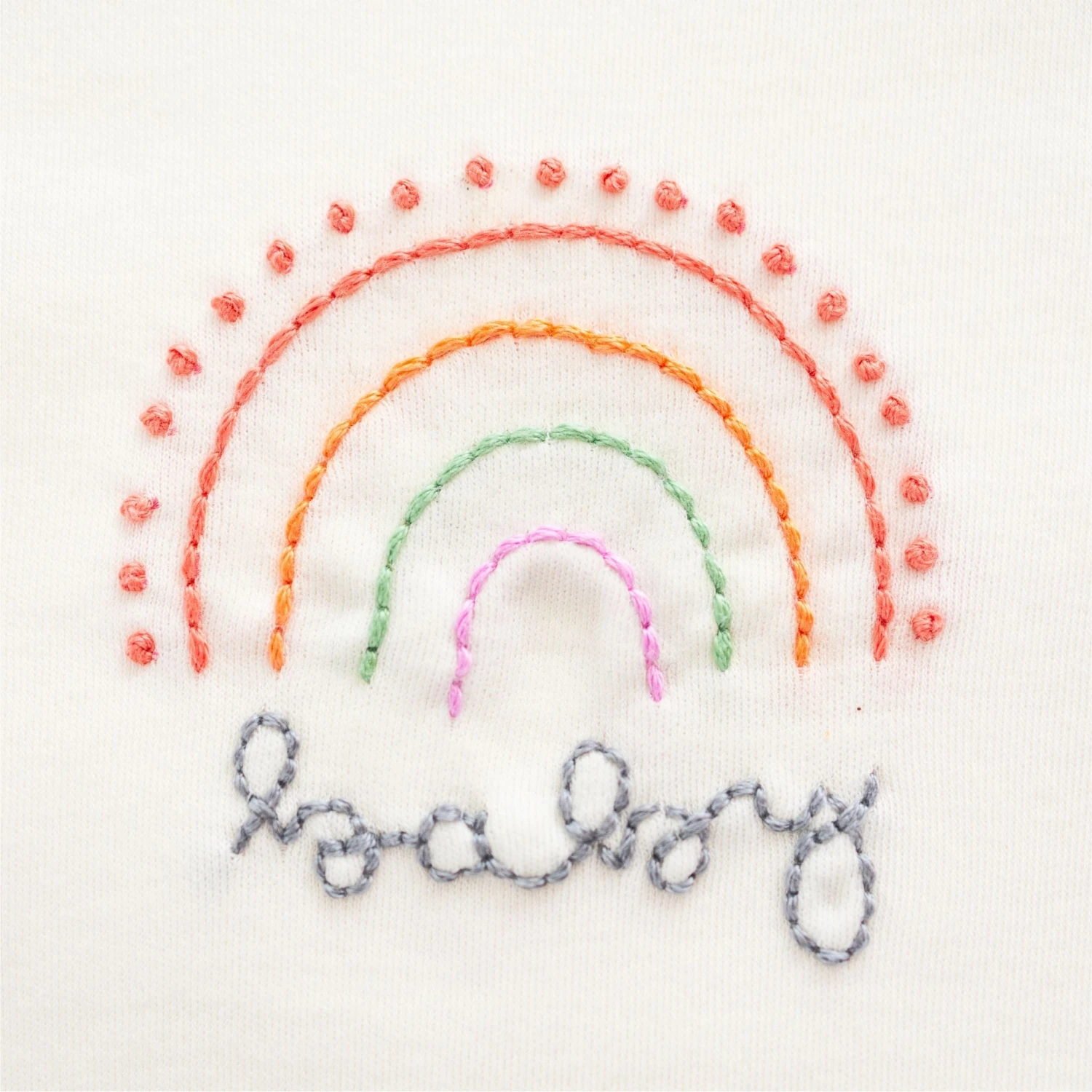 Hand-embroidered rainbow design symbolizing new beginnings