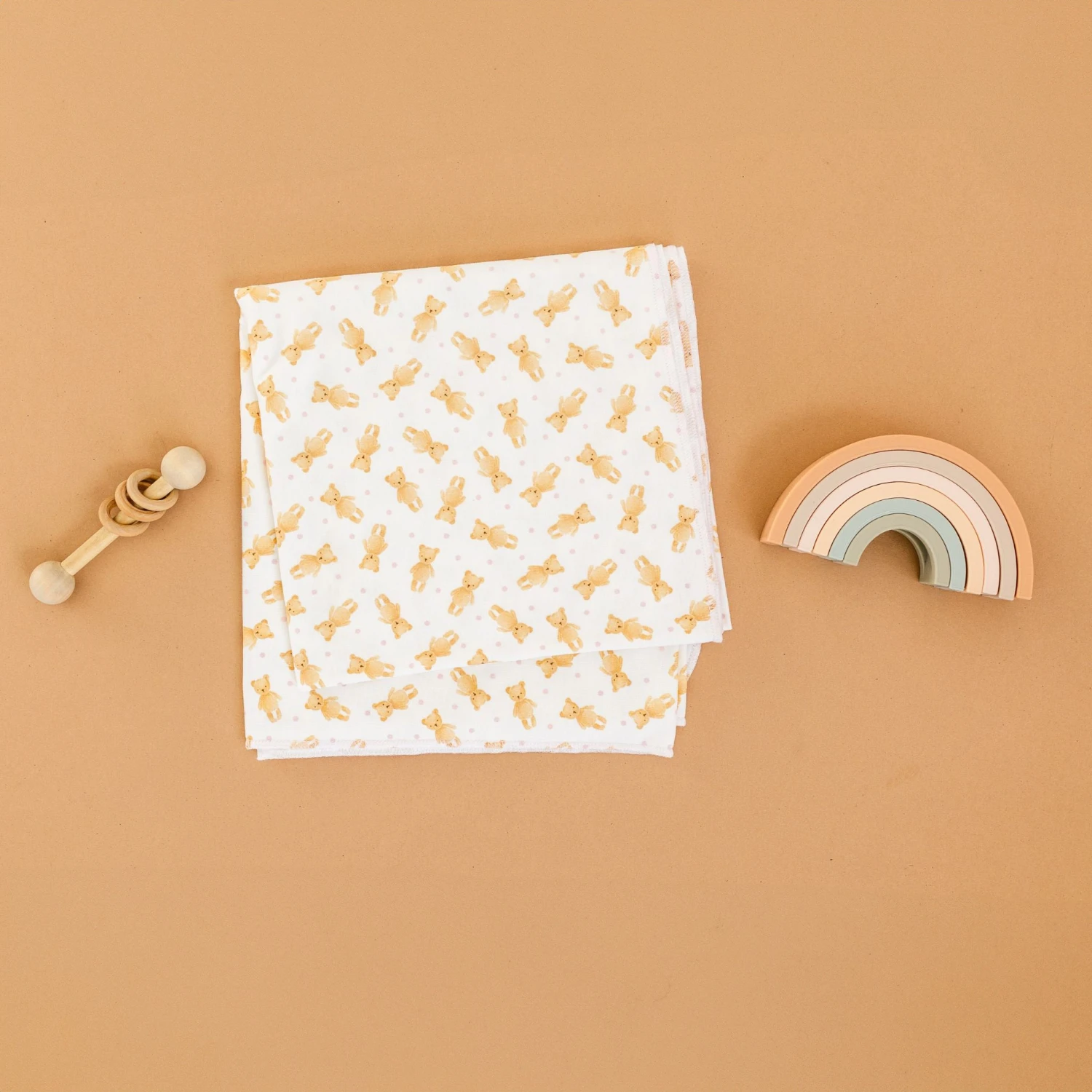 Wrap up your little one in this ultra-soft swaddle blanket, made from high-quality pima cotton. The adorable teddy and pink polka dot print adds a touch of charm to nap time, and the lightweight fabric ensures maximum comfort for your baby. Keep them cozy and snug as they drift off to dreamland.